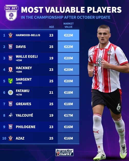 英冠身价排行榜大揭秘 贝利斯和戴维斯高居榜首 伊镇球员也不甘示弱_英超直播免费观看