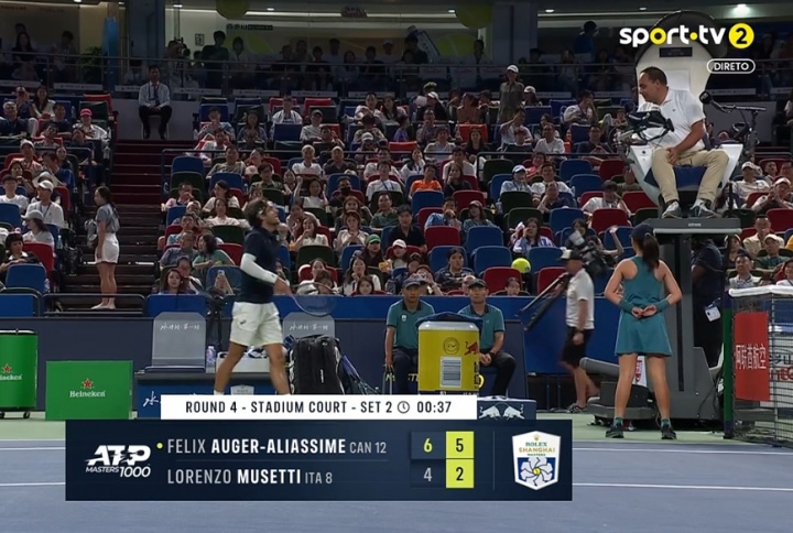 赛事的某个时刻,在第二盘穆塞蒂以2-5面临对手的发球胜赛局时,他对裁判表达了自己的不满:“每一分都这样,我需要你们理解,我确实有失误,但观众每分都在咳嗽,这实在太困扰了。”裁判对此回复道:“我相信他们并不是故意的。”而穆塞蒂则表示:“这真是太过分了,请你们给点提示。”